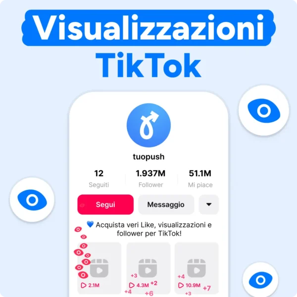 Benvenuto su tuopush, il tuo partner per il successo sui social media. Offriamo interazioni reali e pacchetti su misura per aumentare la tua copertura e ottenere follower duraturi, il tutto supportato dalla nostra assistenza 24/7. Migliora la tua visibilità e la tua credibilità con tuopush.